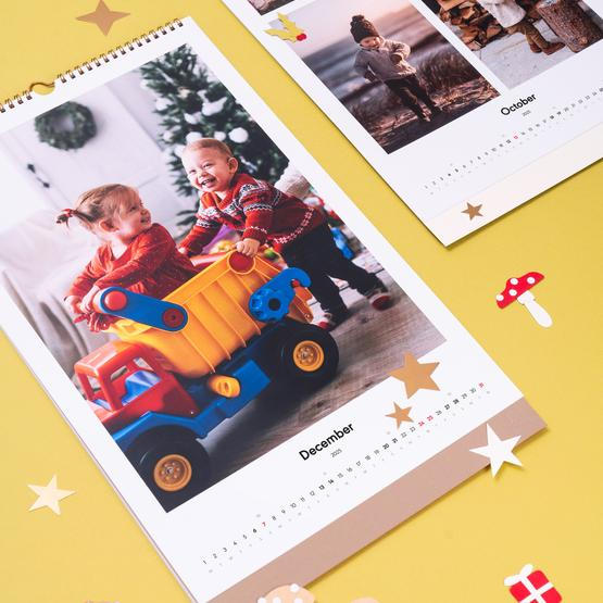 Créez un calendrier mural avec vos propres photos pour 2026. Il vous suffit de choisir parmi les options de couleur et de télécharger un minimum de 12 photos. Vous pouvez utiliser le calendrier photo pour personnaliser votre maison ou comme cadeau unique pour vos proches. Créer un calendrier personnalisé est très facile.